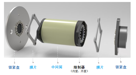 Elastic diaphragm: compensates the small deviation, angular, axial and radial displacement of the unit during operation;